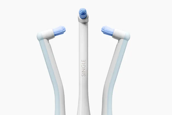 Tooth brushing does not get more precise than this. The “single”, extra small brush head is the ultimate in both tooth-by-tooth and gumline cleaning. Now you can clean between teeth and braces, brackets or retainers – perfectly and effortlessly. Swiss brush head technology at its finest.